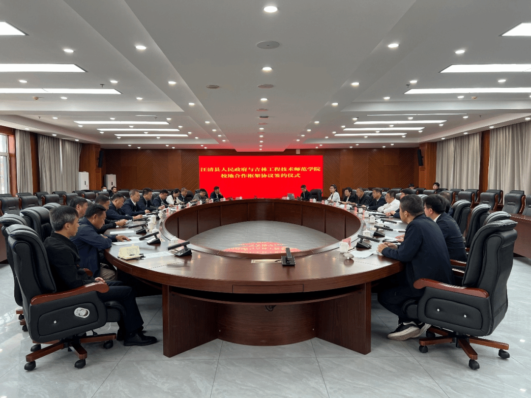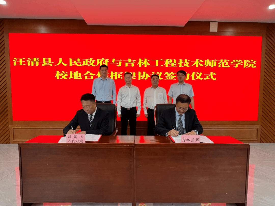 会上,刘克平、焦亮分别代表校地双方签署了《汪清县人民政府与吉林工程技术师范学院校地合作框架协议》。
