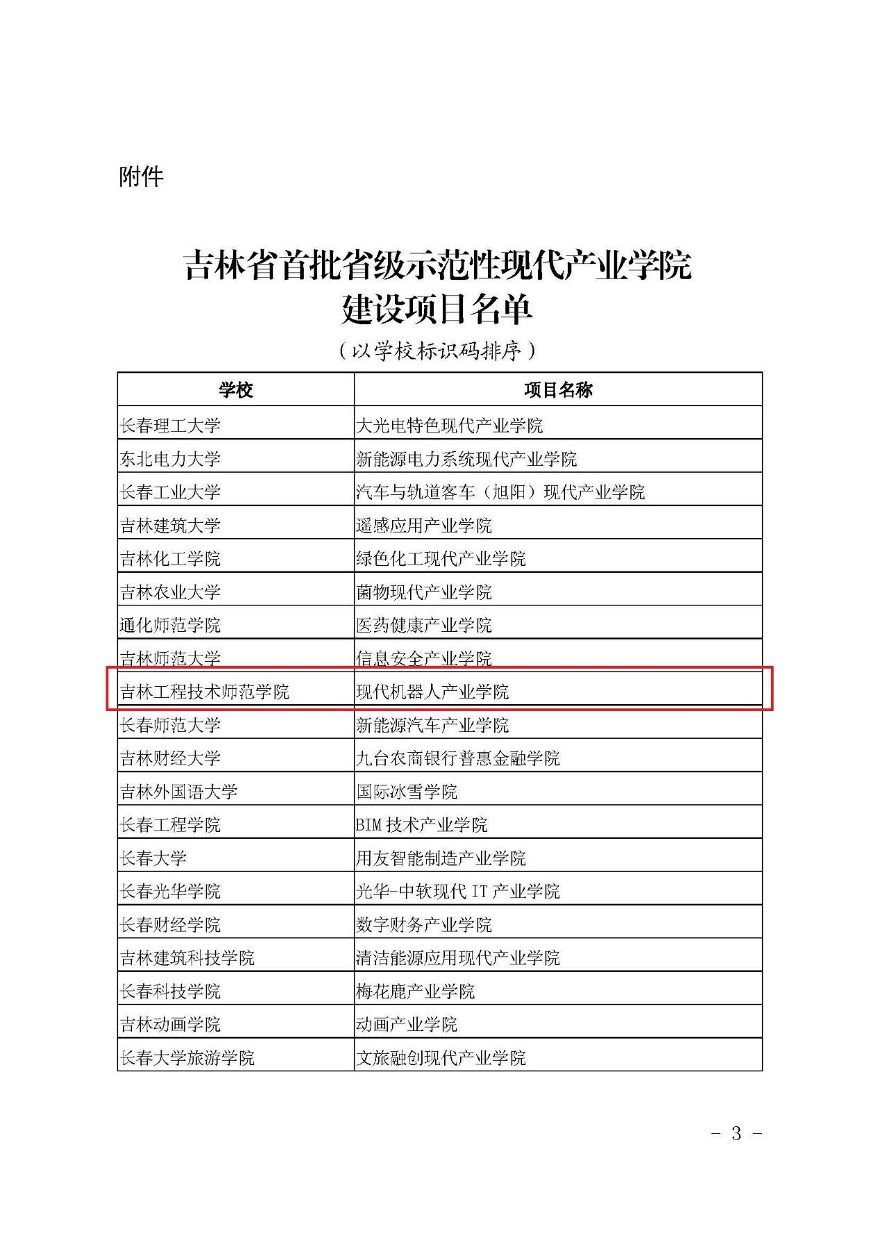 近日,吉林省教育厅、吉林省工业和信息化厅公布首批省级示范性现代产业学院建设项目名单,吉林省首批设立了20个省级示范性现代产业学院,我校现代机器人产业学院成功入选。