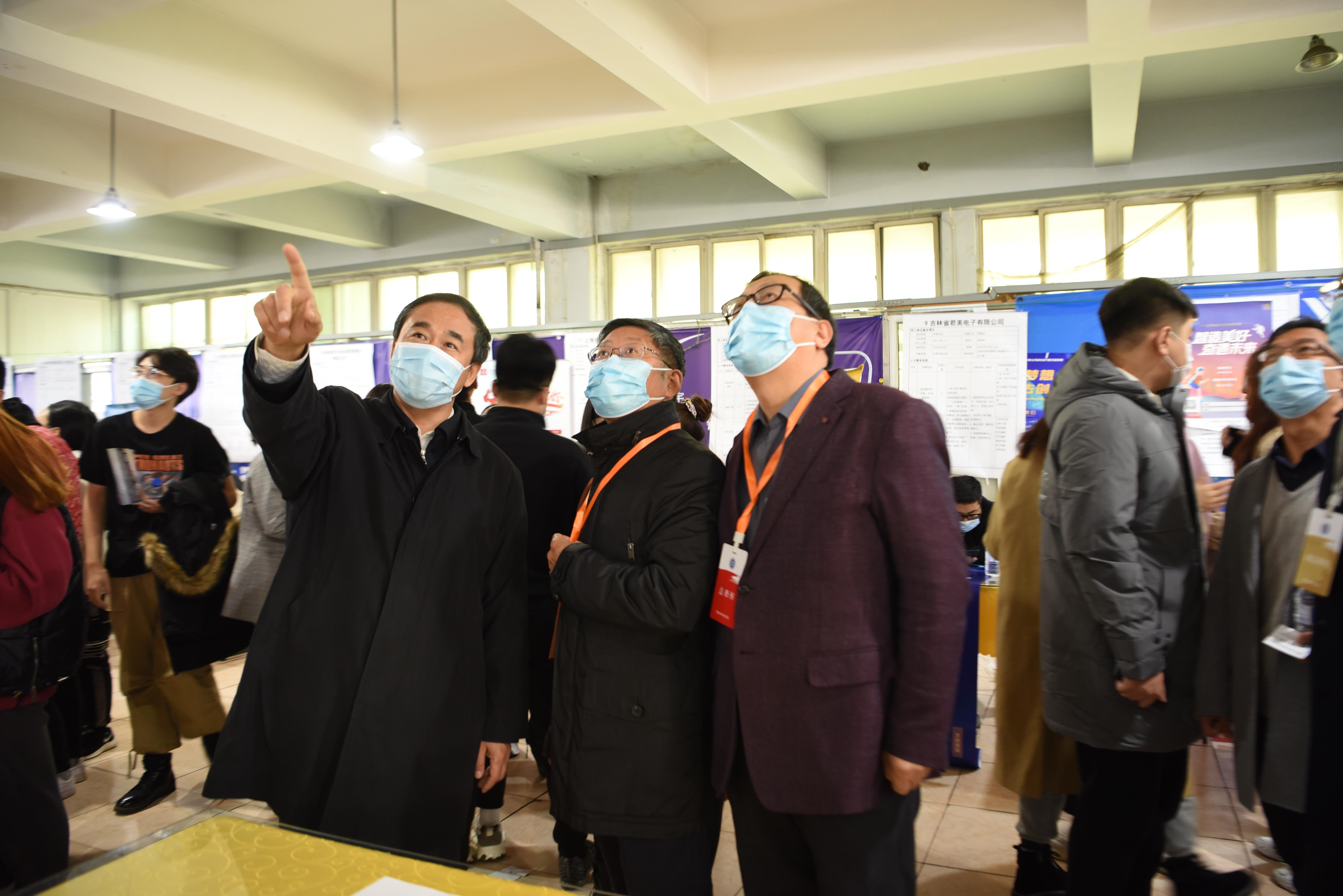 吉林省教育厅副厅长许世彬、吉林省高校毕业生就业指导服务中心主任唐洪峰、长春市人才服务中心副主任王小天以及我校党委书记栾立明、校长杨晓东、纪委书记左伟、副校长张鹏、党委副书记陈景翊、副校长曹国亮、副校长宋立军、党委常委张新华亲临招聘现场指导工作,广泛深入了解企业用工需求和学生求职意愿。
