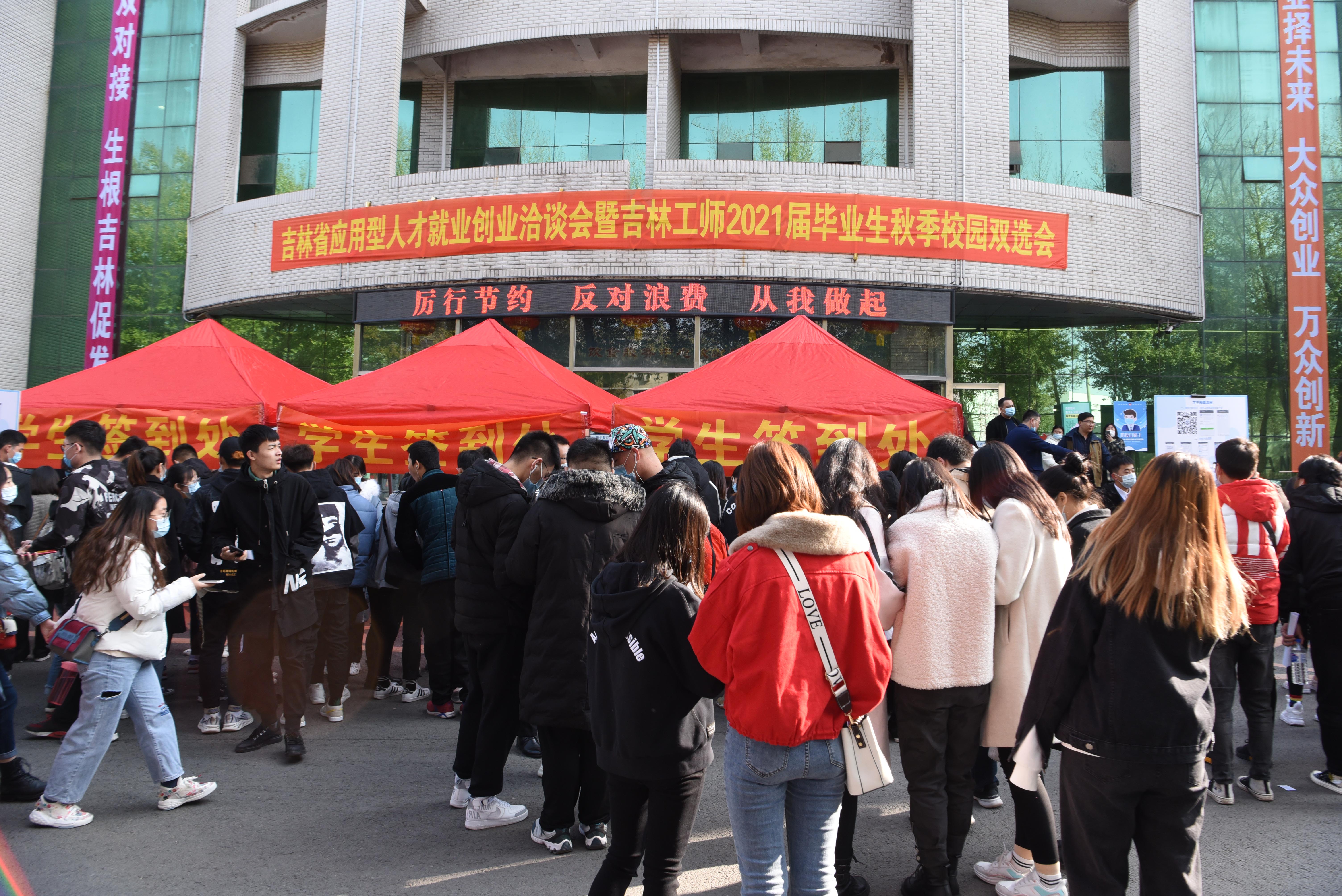 为推动高校毕业生高质量就业,实现我省人才资源合理配置,10月29日上午吉林省应用人才就业创业洽谈会暨2021届毕业生秋季校园双选会在我校举行,共计150家用人单位、2000余名毕业生参与。本次应用型人才就业创业洽谈会是吉林工师落实省委省政府做好2020届毕业生就业工作的要求,促进我省高校毕业生充分就业而举行的一次重要供需见面洽谈会。吸引了包括北京字节跳动科技有限公司、唯品会电子商务有限公司、招商银行股份有限公司、吉林省中东集团有限公司、新希望六和股份有限公司等150多家省内外企业参会,提供就业岗位5800多个。此次双选会同时开放线上视频面试平台,省内应用型高校3000余名毕业生参与了线上线下的洽谈,意向签约千余人。