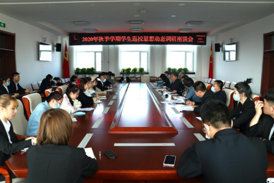 9月29日下午,学校组织召开了2020年秋季学期学生返校思想动态调研座谈会。宣传部、教务处、学工部、后勤管理处、保卫处以及高新校区管理办公室、长德校区管理办公室等的相关职能部门负责人出席会议,13个学院的20余名学生代表参加了座谈会。会议由学工部副部长王旭主持。
