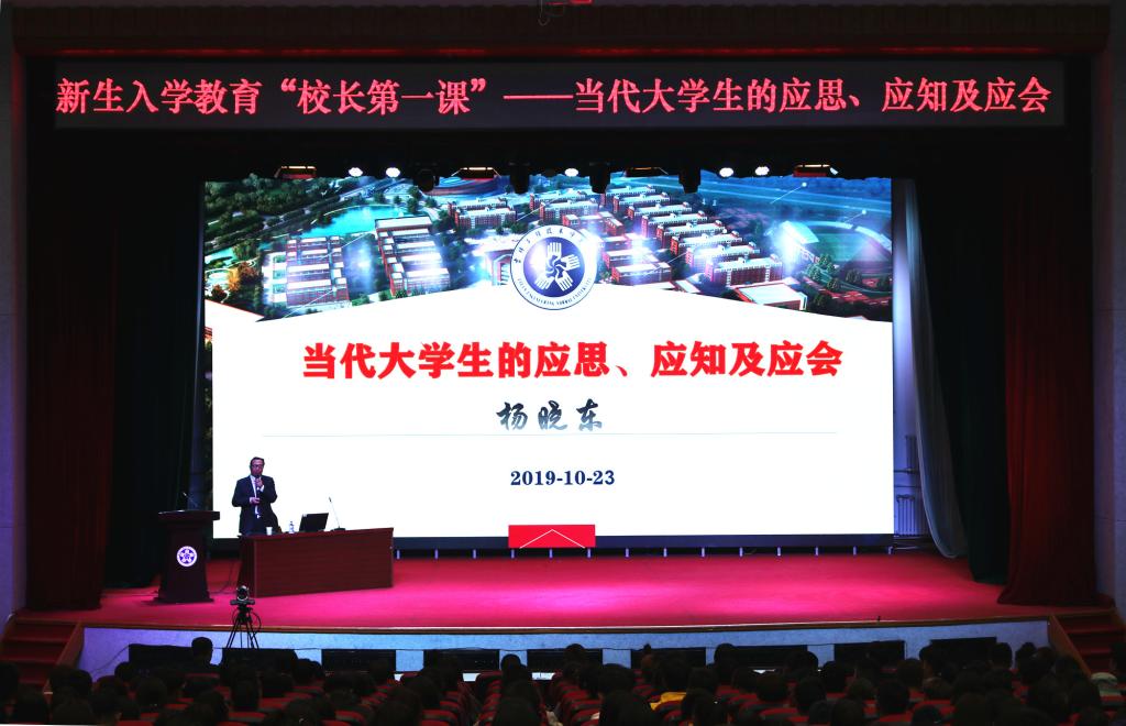 杨晓东从当代方位、应思问题、应知问题、应会问题这四个方面教育和引导学生努力成为一名优秀的大学生,为我校新生学子的大学生涯指明了方向。杨晓东从历史方位、空间方位、个人方位这三个方面详细解释了当代教育的方向和当代大学生所处的时代背景,用朴实的语言从“我要干什么”、“我能干什么”、“我要怎么干”这三方面引导学生进行自我判断,应该如何做一名对社会有用的新型人才,又从“是什么”、“为什么”、“怎么做”这三方面讲述了作为当代大学生所应知道的国际、社会、学校、专业等诸多方面的知识。最后,杨校长勉励同学们:要树立远大志向、明确前途目标、运用科学方法、拥有顽强毅力,做一名“会表达”、“会沟通”、“会思考”的新时代大学生,脚踏实地地走向幸福与成功的美好明天。杨晓东的讲座从实际出发,以大学生活所需到争做时代新人、从校园文化建设到实现人生理想,立足当下、着眼未来,详细的讲述了我校大学生的“应思、应知、应会”问题,使同学们深受鼓舞,在我校新生当中引发广泛的反响,同学们纷纷表示要争做时代青年,做到善思、律己、刻苦奋斗,从我们“工师港”扬帆 起航,开启幸福的未来人生新航程!