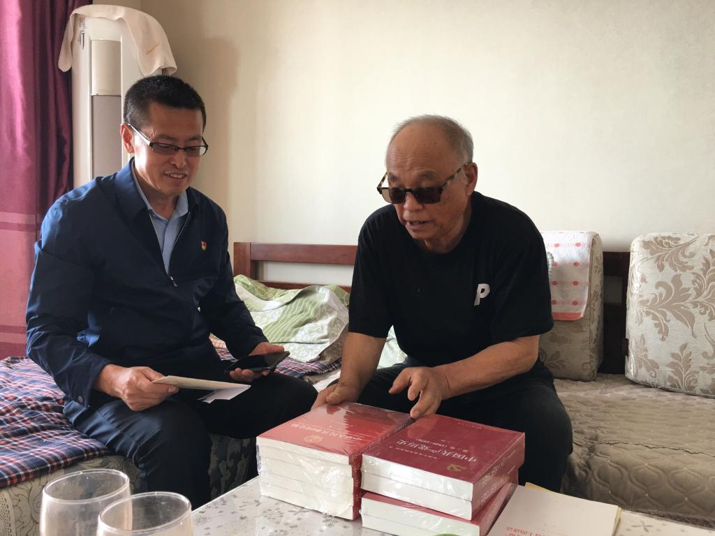 在老同志家里,我们详细询问老同志们的生活和身体状况,向老同志介绍开展“不忘初心、牢记使命”主题教育的开展情况和学校现在发展状况。认真听取和征求老同志们对学习主题教育的看法和对离退休工作处工作的意见和建议。韩文成书记今年89岁,虽然年纪已高,但老人在家中学习的劲头不减,经常用放大镜看书读报,一直关注党和国家的建设和发展,党性觉悟很高,交谈中,对党中央重大活动安排,都一一了解。此次开展主题教育作为厅级领导支部书记,韩文成还提前征求了其他支部成员的学习意见,并把征集意见汇报给张平书记。张文显院长对送去的学习资料表示非常感谢,说学习资料非常珍贵,一定好好研读。