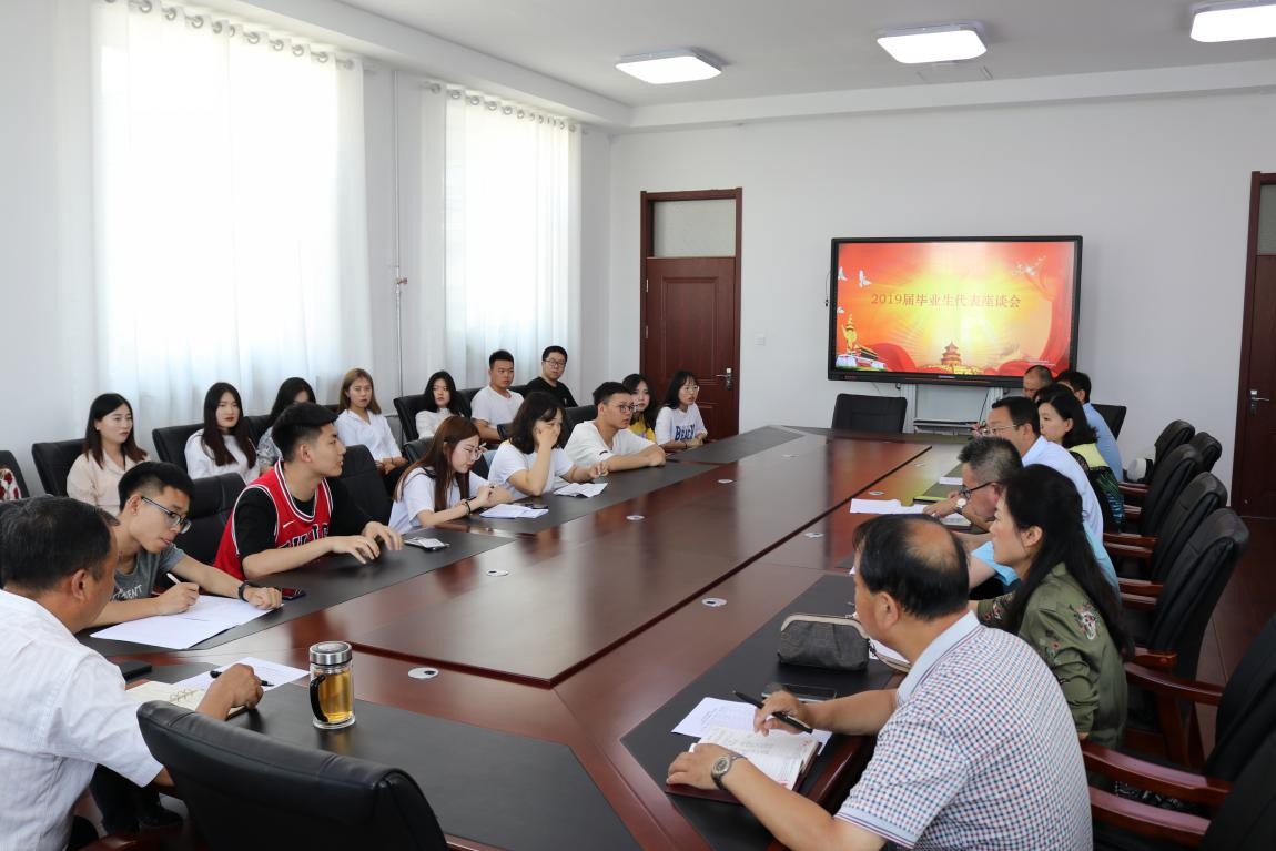 6月24日下午,学校办公楼427室召开2019届毕业生代表座谈会。党委副书记陈景翊出席座谈会,宣传部、教务处、学工部、团委、保卫处、后勤管理处、高新校区管理办公室、长德校区管理办公室等单位相关人员以及20余名毕业生代表参加座谈会。本次座谈会由学工部副部长王旭主持。