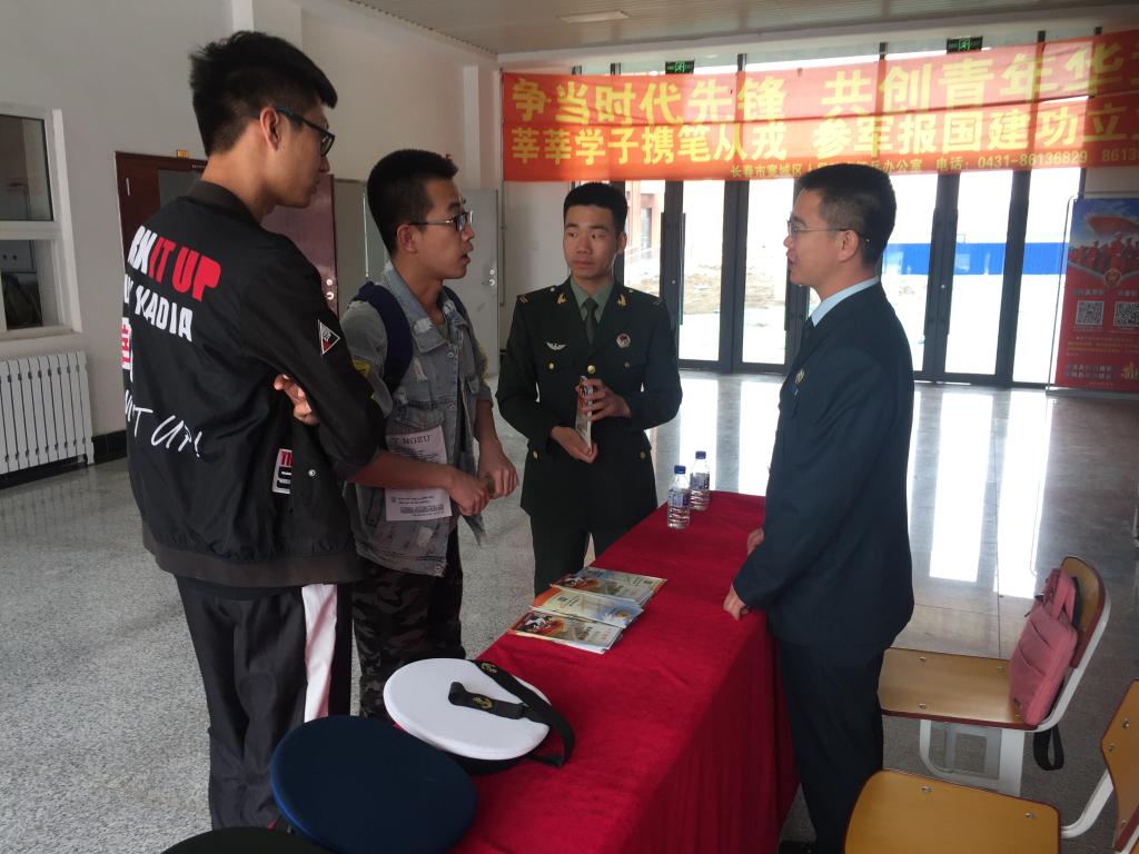 纪晨详细解读了我校征兵入伍的优抚政策,并对在座大学生提出殷切期望,动员大学生报名参军,并对宽城区武装部相关人员和我校退伍大学生的到来表示感谢。