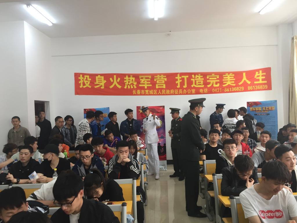 5月14日,学工部在长德校区组织开展以“携笔从戎,参军报国”为主题的征兵政策宣传会,邀请长春市宽城区武装部王云会科长现场指导,有意向报名入伍的近200名学生参加会议。会议由学工部副部长纪晨主持。