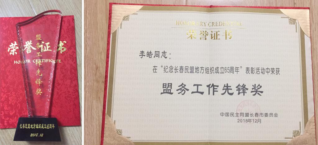 12月21日,“不忘合作初心,继续携手前进”——改革开放40周年暨长春民盟地方组织成立65周年纪念大会在长春召开。会上表彰了65年来,特别是进入新时代以来为长春民盟做出突出贡献的集体和个人,我校3位盟员荣获表彰。学校民盟支部主委,食品工程学院院长李晧教授获得“盟务工作先锋奖”;长春市政协委员,市民盟常委,民盟学校支部副主委,信息工程学院院长王朝勇教授获得“参政议政精英奖”;我校民盟成员,信息工程学院邵丙新老师获得“社会服务奉献奖”荣誉称号。