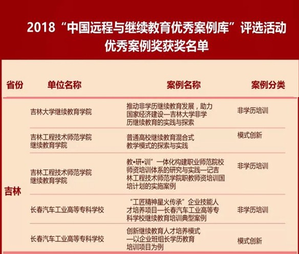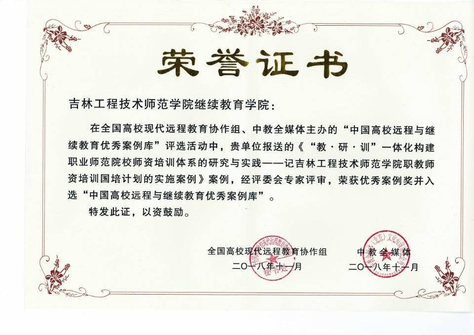 我校两项案例《“教·研·训“一体化构建职业师范院校师资培训体系的研究与实践》、《普通高校继续教育混合式教学模式的探索与实践》获奖。继续教育学院、职业教育培训中心院长(主任)苏顺亭,直属党支部书记于红梅应邀参加会议,并上台领奖。