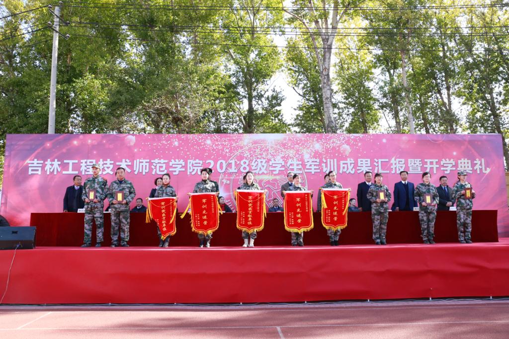 汇报表演结束后,学校武装部部长王宝龙向陆军装甲兵学院士官学校赠送锦旗,“言传身教展军姿,军民共建育英才”是对此次军训成果的总结,也是感谢陆军装甲兵学院士官学校一直以来对我校军训工作的大力支持,共同为促进军民融合而努力。随后,军训团政委邱敏宣读《2018级新生军训表彰决定》,对军训期间的先进集体和个人给予高度评价。激励了广大学工干部和全体学生在今后的工作、学习中继续发扬部队的优良传统和军人的优良作风。