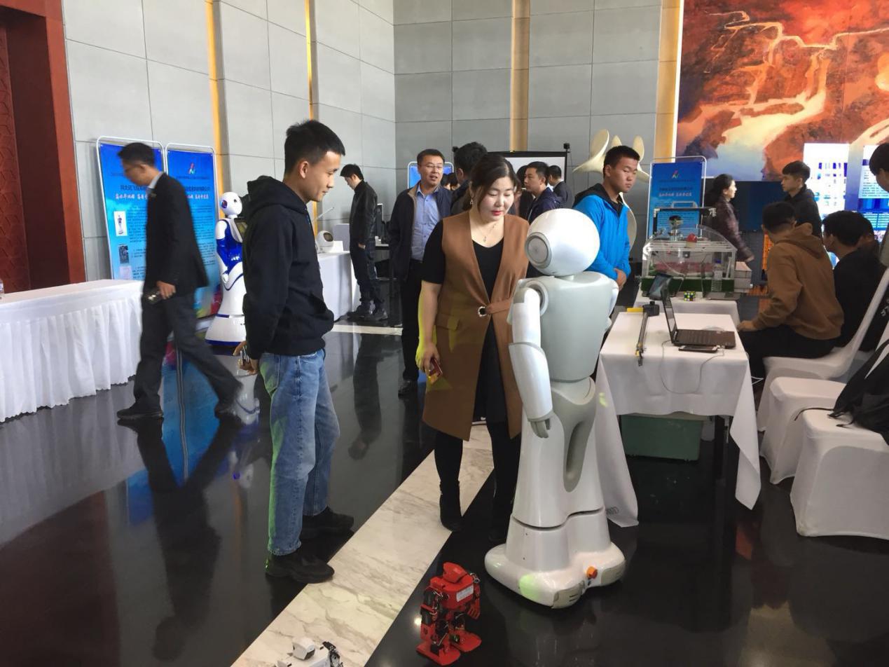 基地的创业成果“爱科技机器人”“多功能模块化辅助人工水果采摘器”“教学式小型五轴数控机床”在双创周优秀创业成果展中成功展示,并得到石玉钢和与会人员的一致好评。