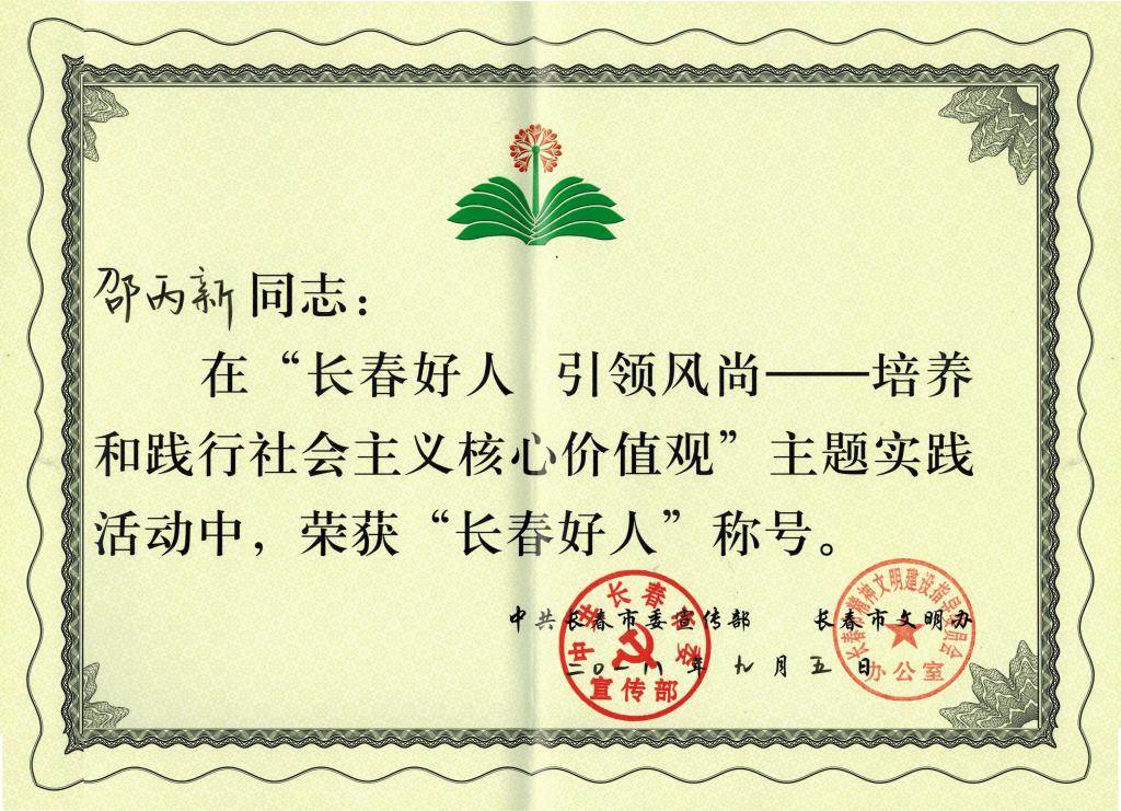 近日,2018年第2季度“长春好人”评选活动结果揭晓,我校信息工程学院教师邵丙新荣获“敬业奉献•长春好人”荣誉称号。