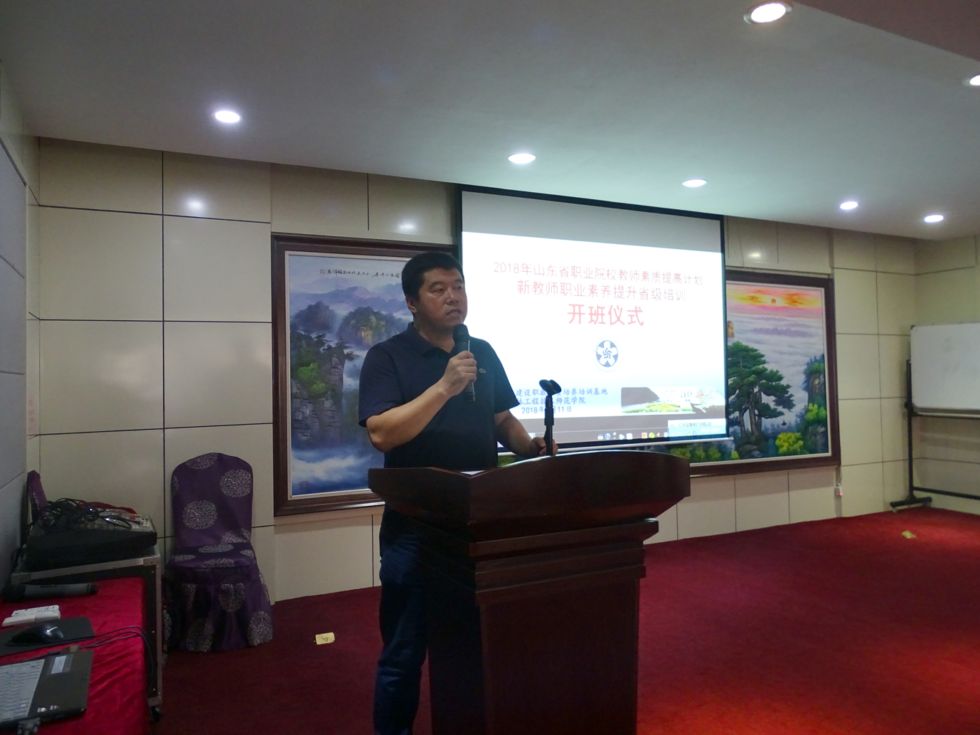 8月11日,我校承接的2018年度山东省职业学院教师素质提高计划新教师职业素养提升省级培训开班仪式在广源宾馆举行。开班仪式由职员教育培训中心副处级调研员萧跃利主持。
