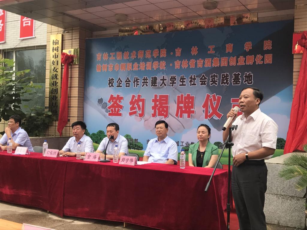 为响应共青团中央、团省委的号召,充分发挥社会实践的育人作用,在学校与榆树市委宣传部的共同推动下,学校与榆树市巾帼职业培训学校合作建立大学生社会实践基地。7月13日上午,我校与榆树市巾帼职业培训学校共同举了校企合作共建大学生社会实践基地签约揭牌仪式,我校党委副书记陈景翊出席了仪式并作讲话。