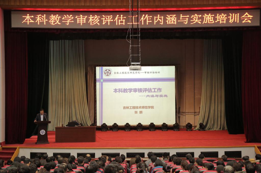 根据教育部统一部署,我校将于今年11月初接受教育部审核评估。为进一步做好评估工作,在全校上下形成人人关心评估、人人了解评估、全员参与评估的良好氛围,4月26日下午,学校副校长张鹏在报告厅作了题为《本科教学工作审核评估内涵与实施》的专题辅导报告。学校科级以上干部及部分教师共400余人参加报告会,会议由党委常委、教务处处长张存贵主持。