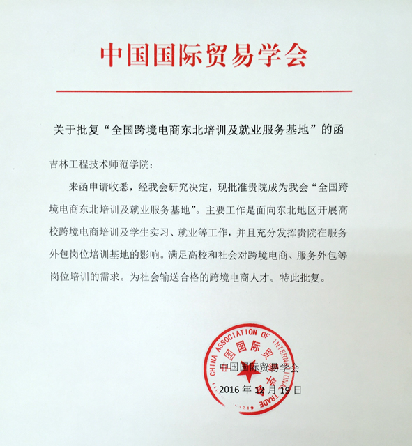 近日,在创业就业处成功与国家商务部直属机构中国国际贸易学会合作开办“全国跨境电商操作专员岗位证书培训班”和“跨境电商主要应用平台实训培训班”基础上,经中国国际贸易学会(简称国贸学会)批准同意我校成为“全国跨境电商东北培训及就业服务基地”。基地将在国贸学会指导和帮助下,面向东北地区开展高校跨境电商培训及学生实习、就业等工作,充分发挥我校在服务外包岗位培训基地的影响,满足高校和社会对跨境电商、服务外包等岗位培训的需求,为社会输送合格的跨境电商人才。