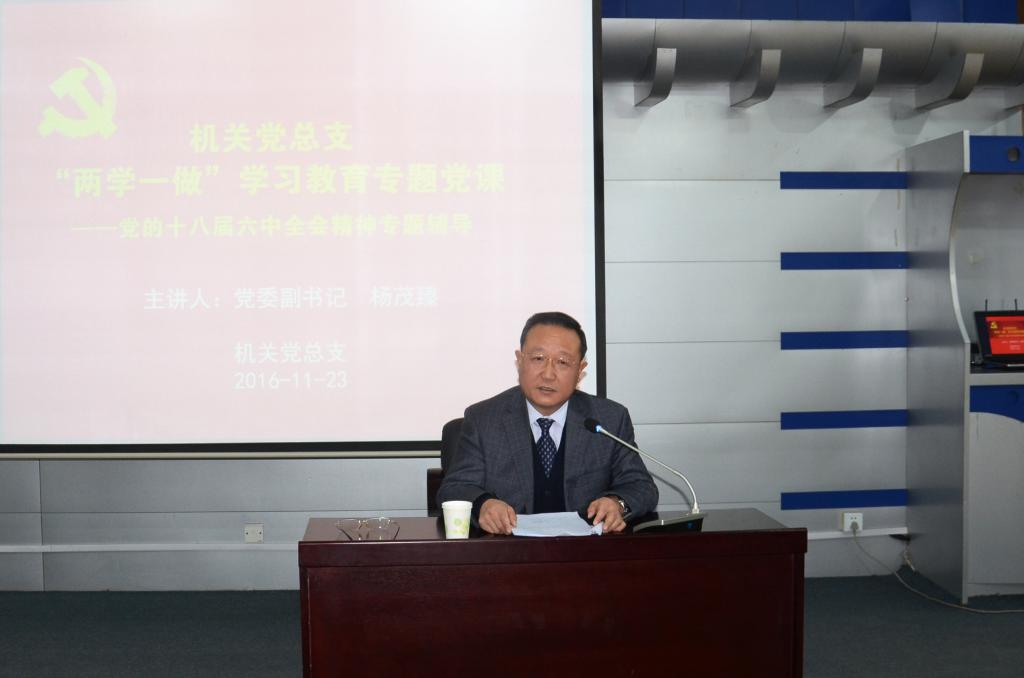 11月23日下午,机关党总支邀请学校党委副书记杨茂臻为全体党员作党的十八届六中全会精神辅导报告。本次报告是机关党总支“两学一做”学习教育系列专题党课之一。学校领导王建华、左伟、张鹏,校长助理曹国亮及机关全体党员参加报告会。报告会由机关总支书记贾秀娟主持。