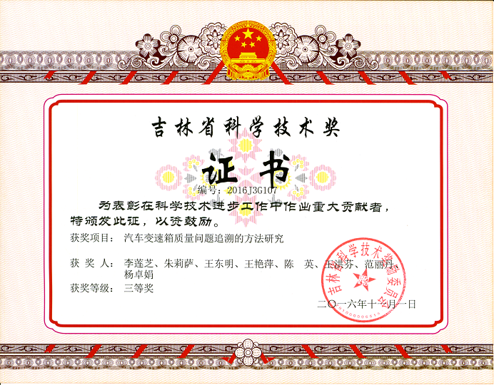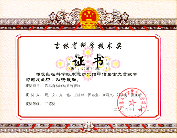 按照吉林省科技厅《关于开展2016年吉林省科学技术奖推荐工作的通知》要求,学校科研处认真、积极组织申报推荐工作,共申报5项成果,其中申报技术发明奖1项、科技进步奖4项。经科技厅组织专家严格评审,我校周广文教授申报的《汽车自动制动系统研制》、李莲芝教授申报的《汽车变速箱质量问题追溯的方法研究》、于静老师申报的《基于森林防火无人机预警系统的火灾探测》3项成果分别获得吉林省科学技术进步奖三等奖。