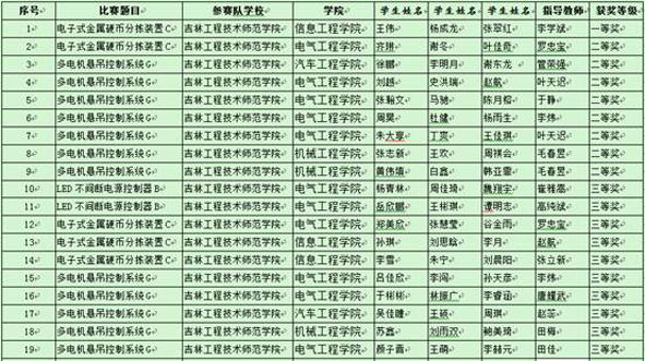 2016年(迪瑞杯)吉林省大学生电子设计竞赛获奖名单