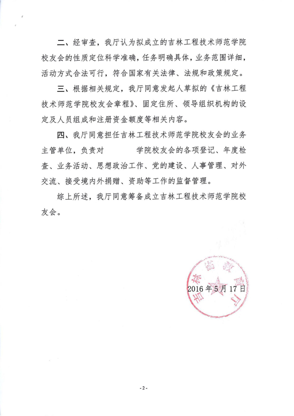 5月17日,吉林省教育厅批复了我校关于筹备成立吉林工程技术师范学院校友会的意见。这标志着我校校友会的筹建进入实质性阶段。我校自成立以来,已培养毕业生三万多人,分布在祖国和世界各地,成为丰富的校友资源。近10年以来,校友工作得到了蓬勃迅速的发展,发展前景广阔。拟成立的校友会能更好地架起学校和校友之间以及校友和校友之间沟通的桥梁,加强校友与母校产学研合作,提高学校的知名度和社会影响力,促进学校和校友事业的共同发展,为社会发展和地方经济建设做出贡献。校友会成立审查意见的批复,是我校校友会筹建工作的关键节点,据此校友会成立工作可依法全面展开。我们相信,在学校党委的领导下,全校师生锐意进取,定将圆满的完成校友会筹建工作。