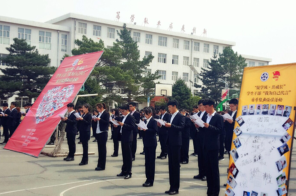 校学生社团联合会主席刘立德同学说:作为当代青年,我们要为自己代言,为国学经典代言,更要为中华优秀传统文化代言,我们此次活动的目的就是倡议全校学子重视国学经典,重视自我文化修养,自觉承担传承、发扬中华优秀传统文化的责任和义务,完善自我的世界观、人生观和价值观,努力成为拥有笃学,敬业,求实,创新优良品格的工师学子。
