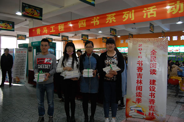 活动现场,团委、学工部、思政部的老师为贫困大学生免费发放由省财政厅、省新闻出版广电局提供的1.7万元惠民购书卡及《核心价值观十二讲》、《东北抗日战事》、《铁人王进喜》、《意林》、《文摘旬刊》等200余套5万码洋图书并对学生寄予了殷切希望,希望广大同学能够自强不息,刻苦学习,以立学为先,以读书为本。