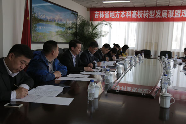 4月20日下午,吉林省地方本科高校转型发展联盟(以下简称“联盟”)理事长工作会议在我校召开。吉林工程技术师范学院、吉林农业科技学院、长春建筑学院、吉林动画学院、通化师范学院、吉林省通用机械有限责任公司等六家理事单位的理事长、副理事长及联盟秘书长、副秘书长参加了会议。省教育厅高教处处长宋辉、副处长赵新雅莅临大会,会议由联盟理事长栾立明主持。