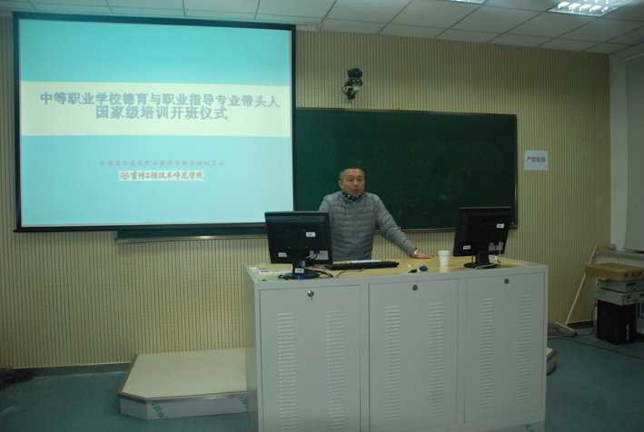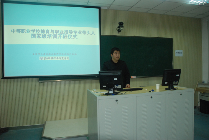 11月13日,“德育与职业指导”专业带头人国家级培训班开班仪式在第一实验楼714室举行,职业教育培训中心主任苏顺亭主持了会议,教务处长张存贵、思想政治理论教研部主任王雪军、中国职教学会职高委常务副主任兼秘书长颜景信、中等职业教育德育研究所所长董鹏中、职业教育培训中心副主任滕玉海、班主任孙暖等参加了会议。董鹏中代表培训承办单位对培训课程、教学等活动安排做了情况说明,齐齐哈尔铁锋区职业技术学校张志勇在代表培训学员的发言中感谢吉林工师对培训周到细致的安排,并表示一定努力学习,将现代的职教理念带到实际工作中。