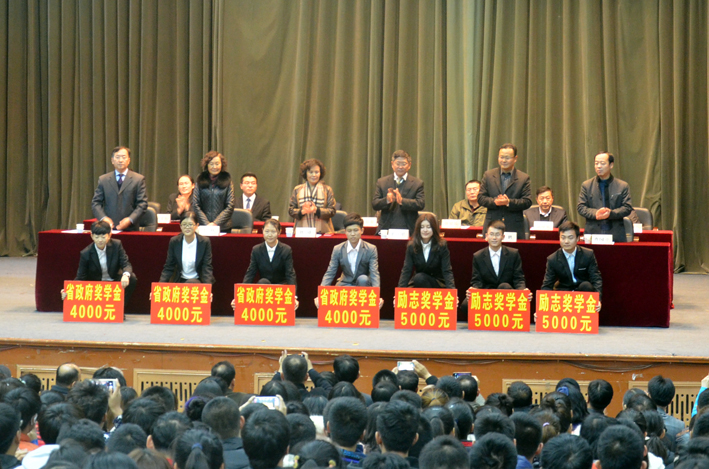 为贯彻落实学校人才培养方案,深化学风建设和基础文明养成教育工作,鼓励广大学生青年积极进取、创先争优,学校于11月5日举行2014-2015学年优秀学生表彰大会。学校校长栾立明、副校长刘琦、副校长张鹏、纪委书记左伟、校长助理曹国亮莅临大会,学生处、校团委、教务处、创业就业处、研究生处等部门的负责人,各教学单位领导,全体学工干部、获奖学生代表及部分师生出席大会。大会由党委常委、校长助理冯超主持。会议进行了表彰和经验交流,首先是学工部部长于彦民宣读《吉林工程技术师范学院关于表彰2014-2015学年优秀学生的决定》,对在学风建设、校园文化建设方面取得突出成绩的先进集体和先进个人以予表彰。其次学校向获国家奖学金、国家励志奖学金、吉林省奖学金以及获得各级各类校外表彰的学生代表进行颁奖,共计3743名学生获得表彰。再次国家奖学金获奖学生代表艺术学院权家杨,考研校友代表外语学院叶尔克西·叶尔肯别克和创业青年教师代表汽车工程学院乔良作经验交流汇报,优秀学生代表的经验和体会带给全校师生深刻启迪和积极鼓励。