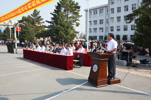 在开学典礼仪式上,校长栾立明发表了热情洋溢的讲话,并代表学校党政领导和全校师生员工向全体新同学表示祝贺和欢迎。同时,栾校长为同学们饱满的热情、昂扬的斗志和顽强的作风“点赞”,为同学们嘹亮的歌声、铿锵的口号和拼搏的誓言“点赞”。在“九·一八”这个特殊的日子里,伴着防空警报的奏响,栾校长更是有感而发,希望同学们继承抗战精神,做一个有精神追求的大学生,要有爱国主义的情怀、笃学善思的境界、自信自强的品格、感恩担当的责任。