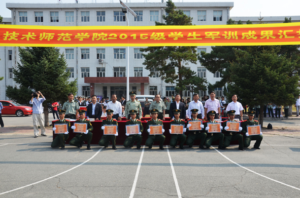 汇报表演结束后,军训团团长、学工部部长于彦民宣读了《关于表彰2015级学生军训先进集体、先进个人的决定》,对军训中的优秀单位、优秀政工干部和大学生军训标兵进行表彰,学校领导、部队首长为获奖单位颁奖。
