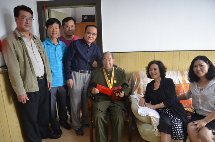 8月31日,在抗战胜利70周年纪念日来临之际,为缅怀历史,表达对革命老前辈的敬仰之情,学校党委书记王建华,副校长刘琦带领离退休工作处、泰来校区管理办公室相关同志走访慰问抗战时期参加革命工作的离休干部韩希明,给他送去抗战胜利纪念章和慰问金,表达党和政府的关心和祝福。