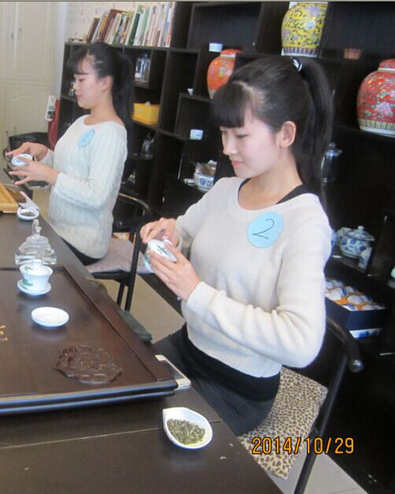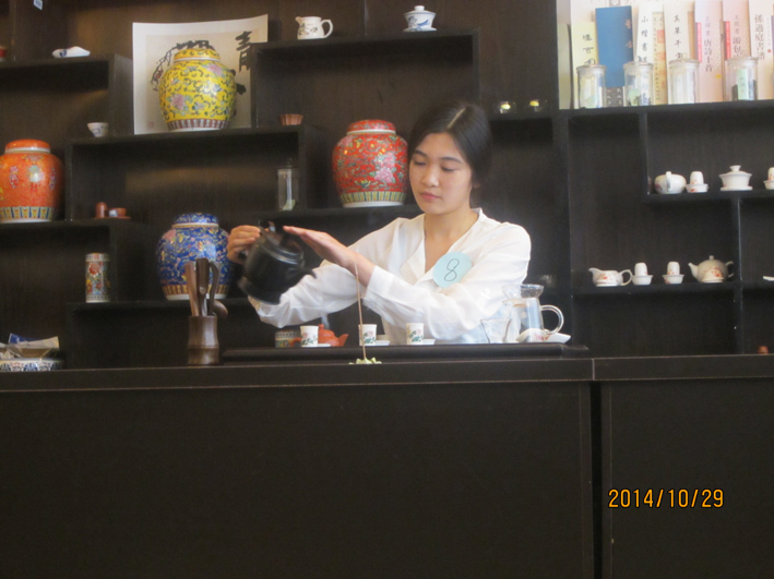 为促进应用型人才培养,全面提升旅游管理专业学生的茶艺操作技能与实践能力,进一步推动教学改革工作,工商管理学院于2014年10月29日下午在新实验楼626茶艺实训室举行了首届“工师杯”大学生茶艺技能竞赛。工商管理学院王时彪书记、刘颖副院长、李文丽副院长及旅游管理专业教师观看了整场比赛。12名参赛选手通过艺术的手法表现出了不同种类茶的冲泡过程,充分展示了茶的色、香、味、形,做到了茶美、器美、水美、意境美、形态美、动作美的完美结合,让欣赏者得到了物质和精神上的双重享受。