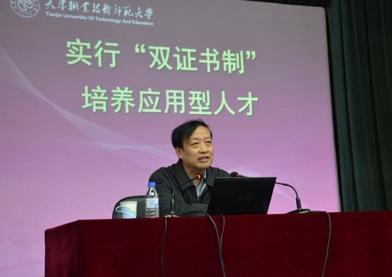 按照学校党委的统一部署,学校正在开展转型发展教育思想大讨论活动,为了进一步提高全体教职员工对学校向应用技术型大学转型工作重要意义的认识,10月12日,天津职业技术师范大学党委书记孟庆国教授应邀莅临我校,在报告厅作了题为《实行“双证书制”,培养应用型人才》的专题报告,我校全体教工700余人参加了会议,报告会由我校党委书记王建华主持。