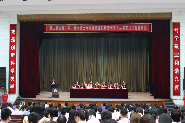 5月24-25日,由吉林省教育厅高等教育处主办、我校与用友新道科技有限公司承办的“用友新道杯”第十届全国大学生沙盘模拟经营大赛吉林省总决赛,在我校成功举办。党委书记王建华教授、校长栾立明教授出席了开幕式。吉林省教育厅高等教育处方国锋同志代表主办单位讲话。栾立明校长代表承办单位在开幕式上发表主旨讲话,阐述了举办沙盘模拟经营大赛的意义和作用,表示“要与包括用友公司在内的企业开展校企合作,培养大批应用型人才,为吉林省经济社会发展做出应有的贡献。”党委书记王建华教授、副校长刘君义教授出席闭幕式并为获奖参赛队伍颁奖,王建华书记在闭幕式上发表热情洋溢的讲话,赢得了与会者的热烈掌声和普遍欢迎。