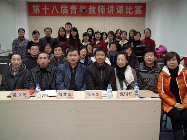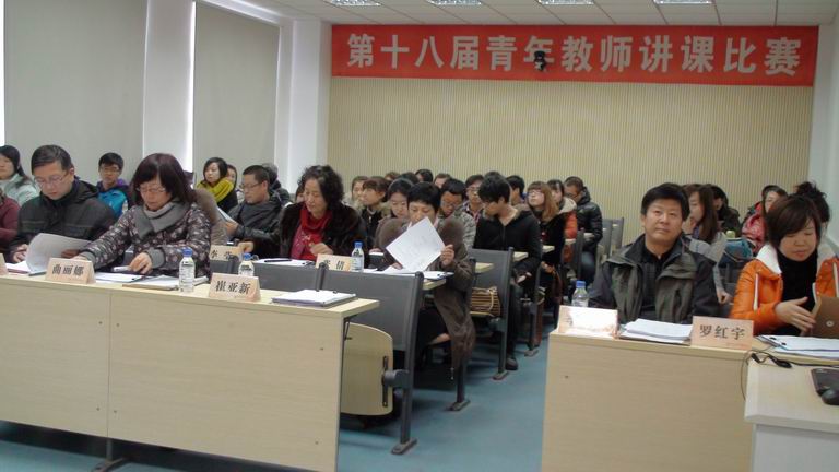 为加强青年教师教学技能与水平的提高,促进教师队伍整体发展,根据教务函字【2012】 23号文件的通知,我校于2012年11月29日、30日举行了第十八届青年教师讲课比赛。共有15个部门19位教师参加,其中文科组10人,理科组9人。