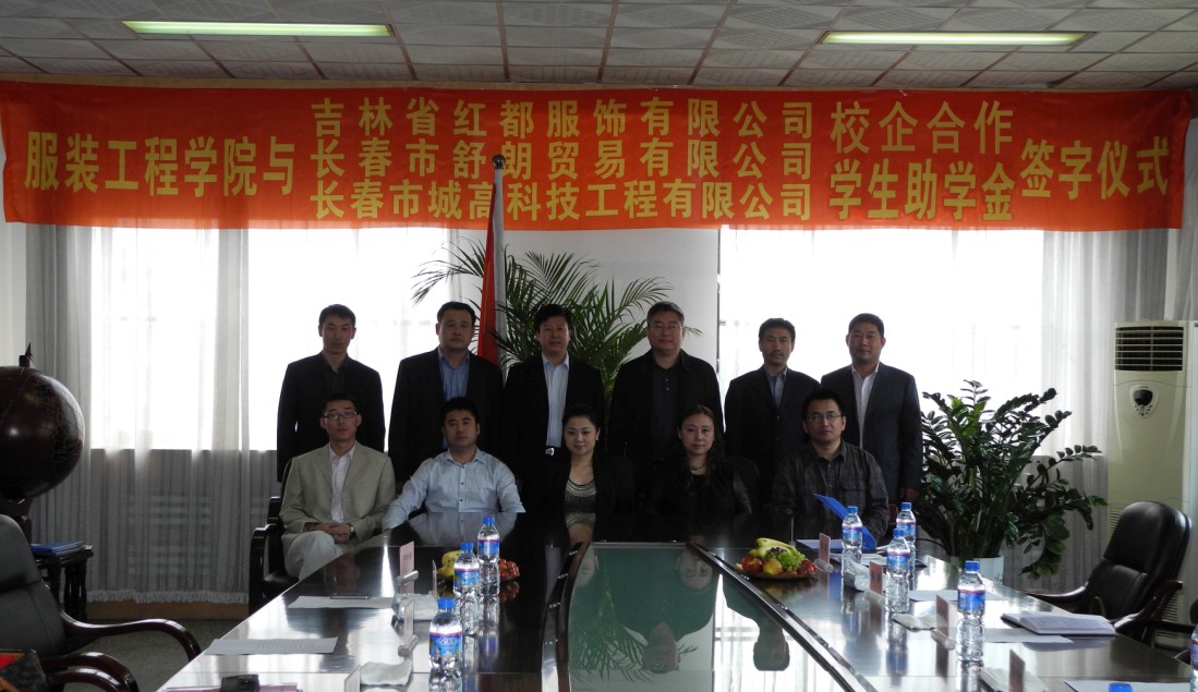 会上,我校服装工程学院与吉林省红都服饰有限公司、长春市舒朗贸易有限公司、长春市城高科技工程有限公司签署了校企合作协议,吉林省红都服饰有限公司作为校方教学与就业实习基地。同时,三家企业还为我校贫困大学生提供“勤勉”助学金。