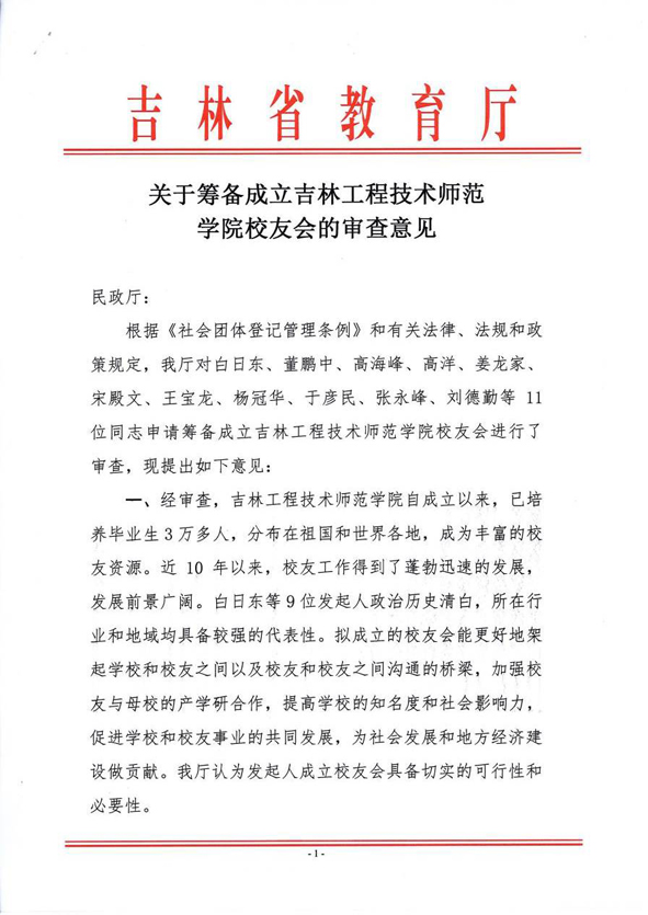 5月17日,吉林省教育厅批复了我校关于筹备成立吉林工程技术师范学院校友会的意见。