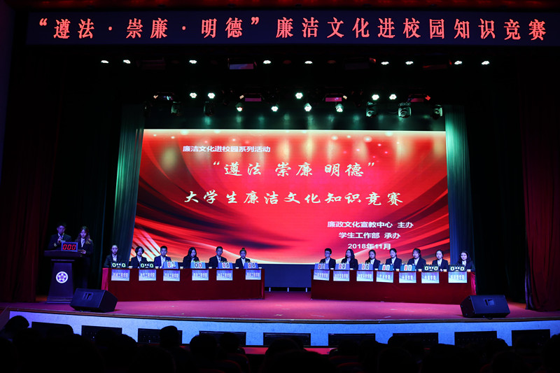 11月7日下午,由廉政文化宣教中心主办、学生工作部承办的廉洁文化进校园系列活动 “遵法 崇廉 明德”文艺表演比赛在我校报告厅举行。学生工作部副部长刘晓敏、校团委书记邱敏、马克思主义学院副院长毛锐担任本次比赛评委,来自我校13个学院的参赛选手给我们上演了一场精彩绝伦的主题文艺秀。“廉洁文化进校园”是反腐倡廉工作和加强学校道德教育的一件大事,是构建和谐教育、办好人民满意教育的客观需要,对于培养广大青少年学...