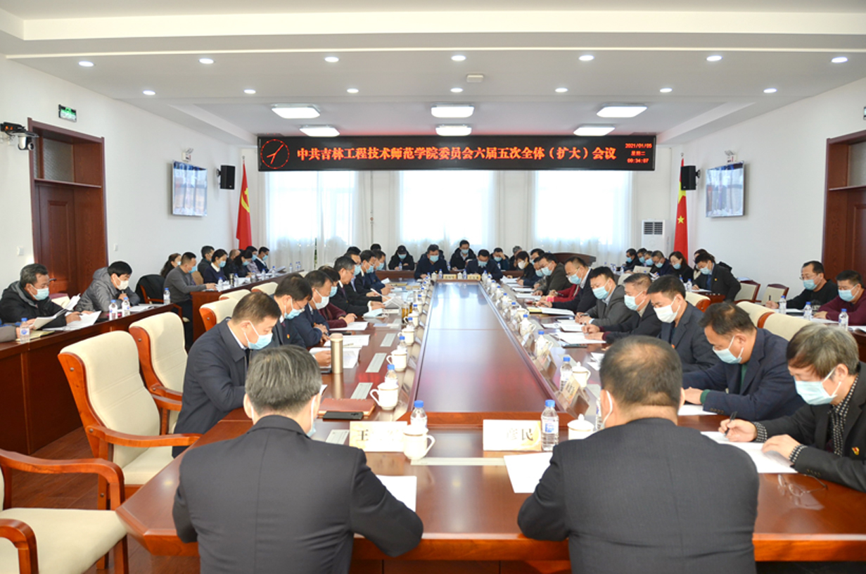 中国共产党吉林工程技术师范学院委员会六届五次全体(扩大)会议1月5日在办公楼410会议室召开。党委副书记、校长杨晓东主持会议。党委书记栾立明讲话。学校党委常委栾立明、杨晓东、左伟、张鹏、陈景翊、曹国亮、宋立军、张新华、张存贵出席会议。出席会议的党委委员24人,纪委委员,省市党代表,各单位、各部门党政负责人列席会议。中国共产党吉林工程技术师范学院委员会六届五次全体(扩大)会议1月5日召开。周颖 摄全会的主要...