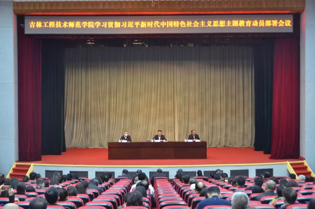 4月13日,吉林工程技术师范学院召开学习贯彻习近平新时代中国特色社会主义思想主题教育动员部署会。党委书记刘剑桥主持会议,并对全校主题教育工作进行安排部署。省委第22巡回指导组组长董天波出席会议并做指导讲话,指导组副组长孙士学,成员高鹏、王春萍,学校领导出席会议。此次大会的主要任务是:深入学习贯彻习近平总书记在学习贯彻习近平新时代中国特色社会主义思想主题教育工作会议上的讲话精神和4月7日召开的吉林省学习贯彻习近平新时代中国特色社会主义思想主题教育工作会议精神,...