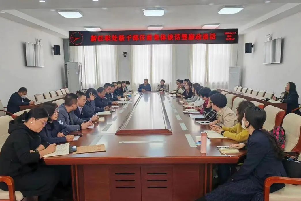 4月17日,学校党委对新任职处级干部进行任前集体谈话暨廉政谈话。学校党委书记刘剑桥、副书记陈景翊、纪委书记马晓春出席,组织部、纪检监察机构负责同志以及全体新任职处级干部参加了会议。会议由陈景翊主持。刘剑桥和马晓春分别对新提任和交流处级干部提出具体要求。刘剑桥从五个方面指出,一要加强理论学习,自觉做到“两个维护”。要在主题教育中学思想、强党性,要心怀“国之大者”、“党之大计”,要严守政治纪律、政治规矩,...