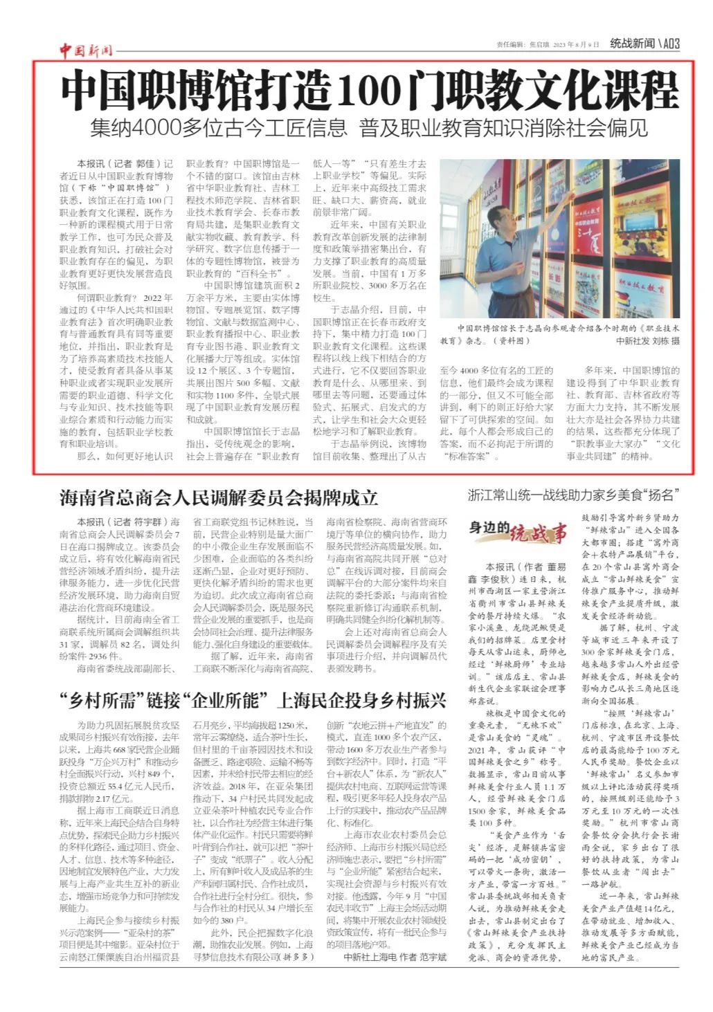 据悉,中国职业教育博物馆(下称“中国职博馆”)正在打造100门职业教育文化课程,既作为一种新的课程模式用于日常教学工作,也可为民众普及职业教育知识,打破社会对职业教育存在的偏见,为职业教育更好更快发展营造良好氛围。何谓职业教育?2022年通过的《中华人民共和国职业教育法》首次明确职业教育与普通教育具有同等重要地位,并指出,职业教育是为了培养高素质技术技能人才,使受教育者具备从事某种职业或者实现职业发展所需要的职业道德、...