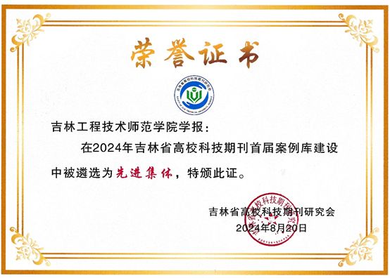 近日,由吉林省高校科技期刊研究会组织的“2024年度吉林省高校科技期刊首届优秀主编、编辑、青年编辑及先进集体案例遴选活动”落下帷幕。《吉林工程技术师范学院学报》获评2024年度吉林省高校科技期刊首届先进集体案例。本次遴选活动旨在进一步提高吉林省高校科技期刊办刊水平,培养和造就一支专业水平高、编辑业务精、创新意识强、综合素质好的高校科技期刊编辑队伍,促进编辑出版单位、编辑出版工作者不断提高期刊编辑出版质量和学术影响力,...