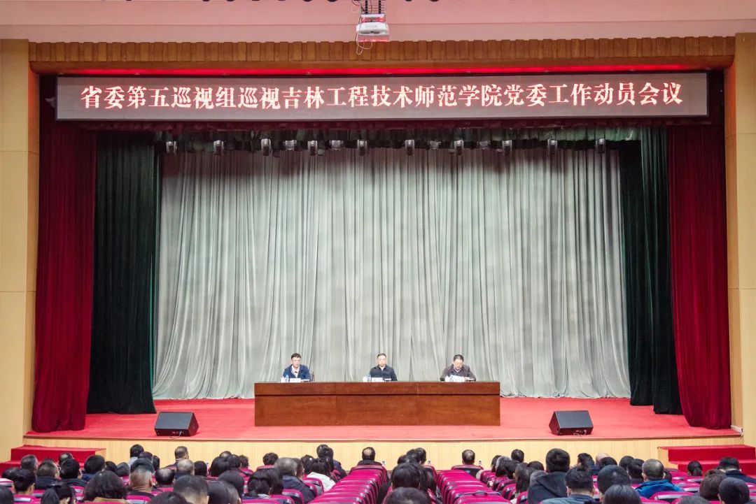 根据省委巡视工作统一部署,3月5日,省委第五巡视组巡视吉林工程技术师范学院党委工作动员会召开。会前,巡视组组长陈岩主持召开与吉林工程技术师范学院党委书记刘剑桥,党委副书记、院长杨晓东的见面沟通会,传达了省委书记黄强在听取十二届省委第五轮巡视综合情况汇报时的讲话要求和省委巡视整改工作推进会议精神,通报了有关工作安排。会上,陈岩作动员讲话,对做好巡视工作提出要求。刘剑桥主持会议并作表态发言。吉林工程技术师范学院党委领导班子成员,...