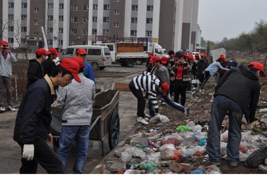 爱心献社会温暖进社区 为弘扬志愿服务精神,配合市容环境综合整治,结合艺术学院创先争优党员教育活动,5月5日,我校阳光志愿者协会艺术学院分会的50名学生,分别来到南关区长通街道光复路南社区和东大桥附近伊通河...