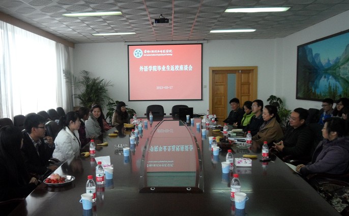 外语学院举办毕业生返校座谈会 2013年3月17日,外语学院在我校第一会议室举办了毕业生返校座谈会。
